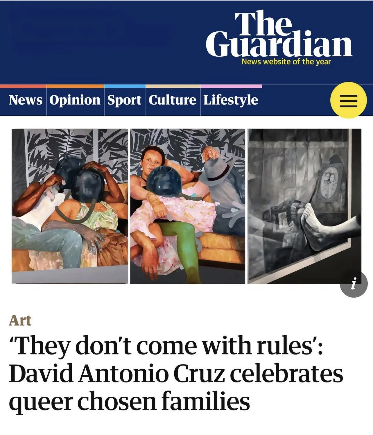 “Chosen family are the folks that love you undeniably, unconditionally,” artist David Antonio Cruz tells the Guardian. “They don’t come with restrictions or rules.” He’s been thinking about chosen family a lot lately, as his new solo show at the Institute of Contemporary Art at the University of Pennsylvania is all about tracing his steps back to the non-biological family that has nurtured him.