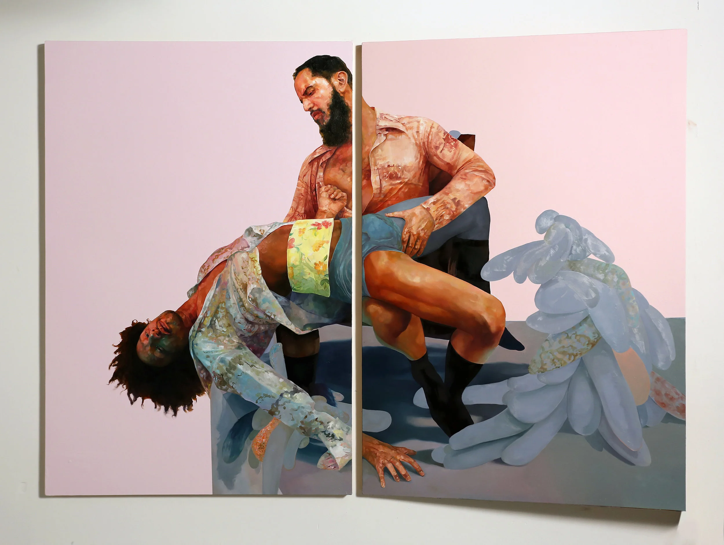 soletthemeatasylumpink, 2016 oil and enamel on wood panel. 72 x 96 x 10 inches.